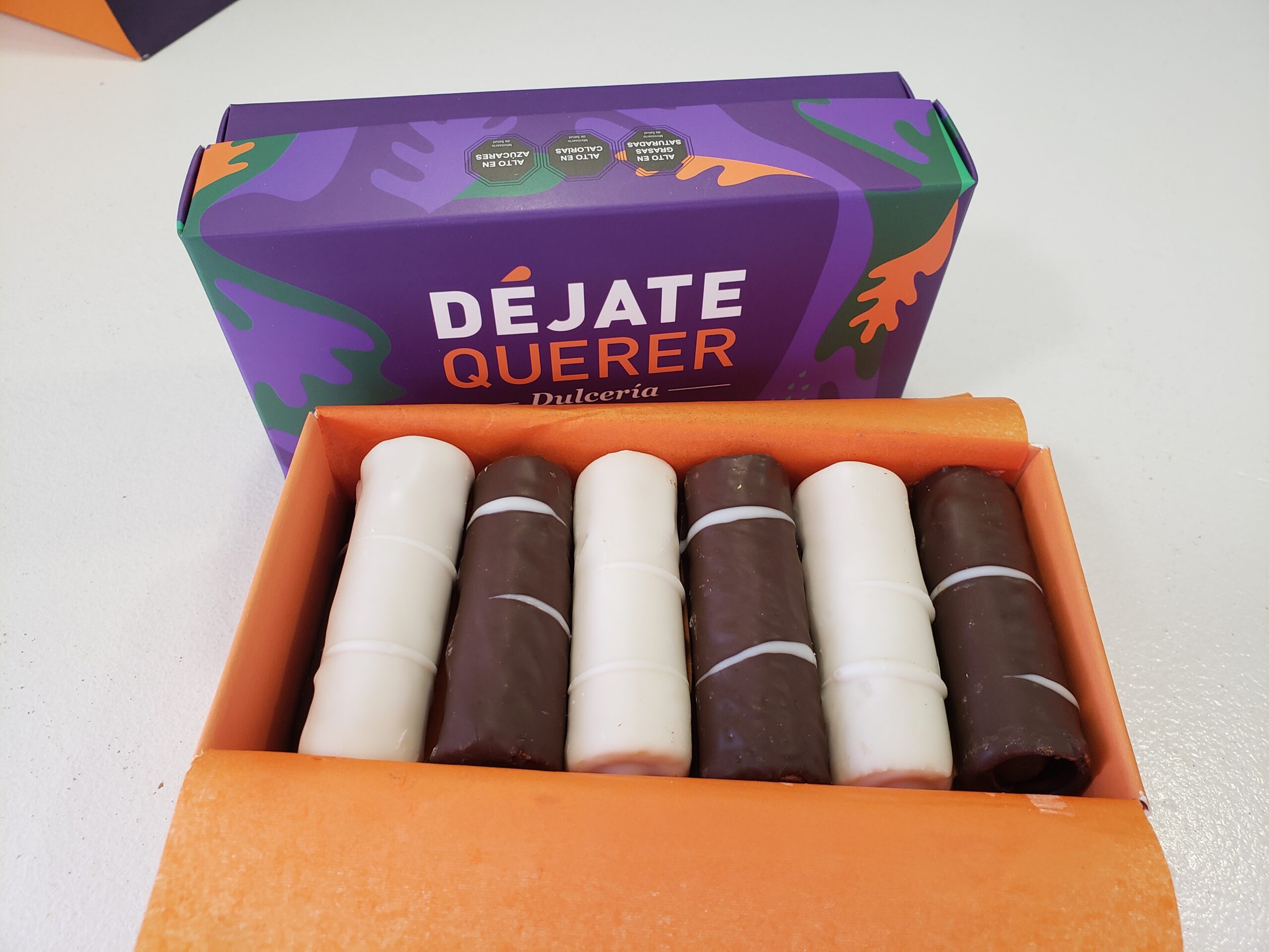 Caja contiene 12 unidades de mini cuchufli gourmet relleno dulce de leche, barquillos totalmente bañados en chocolate por dentro y por fuera (barquillo6,5 cm aprox). Caja lleva mitad de dulce de leche cubierto con chocolate negro y mitad de las unidades de dulce de leche cubierto con chocolate blanco.