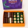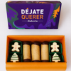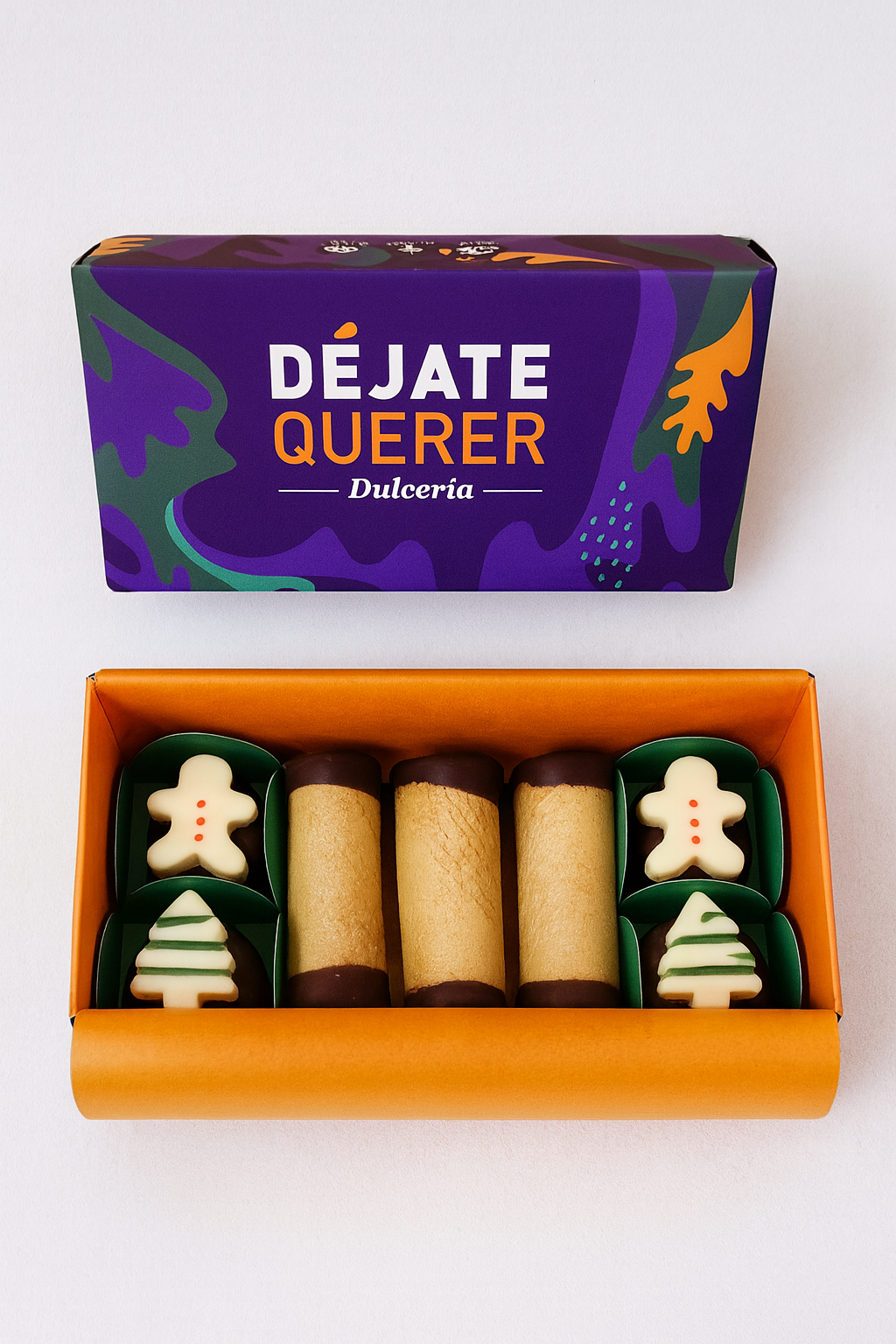 Caja contiene 3 mini barquillos de dulce de leche, 4 bombones rellenos de caramelo (2 de chocolate leche con caramelo de chocolate y 2 de chocolate semi-amargo con caramelo tradicional